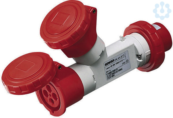 Kupplung fuer industrielle Anwendungen gemaess IEC 60 309 (EN 60 309) zweifach und fest angeformten Stecker