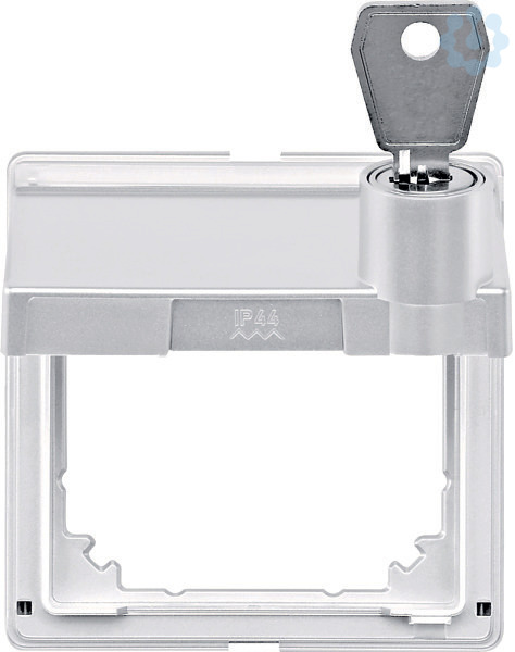 Verschiedene Schließungen. Mit dem Zwischenring können System M-Einsätze mit normaler Bauhöhe (z. B. TAE, UAE, Steckdosen, -) in AQUADESIGN integriert werden. Schutzart IP 44 bleibt erhalten. Farbe polarweiß.