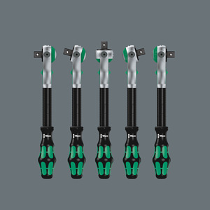- Mit frei schwenkbarem Knarrenkopf, Druckknopfauslösung und Links- /Rechtsumschaltung