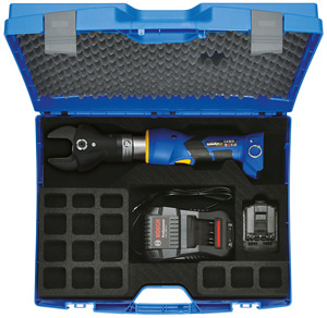 ESM 35 Akkuhydraulisches Schneidwerkzeug Ø 35 mm für Kupfer- und Aluminiumkabel, geschützte Schneidmechanik, Schneiden von Kupfer- und Aluminium-Kabeln, alle Kabelklassen 1, 2, 5 und 6, alle Werkzeugdaten im Blick dank eingebautem Display, Bosch Akku 18V