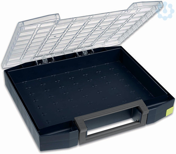 Die boxxser-Serie besteht aus 6 Koffervarianten in 2 unterschiedlichen Höhen, gefertigt aus stoßfestem und bruchsicherem Polycarbonat in einer Doppelwandkonstruktion, Profilraster in Deckel und Boden sichern den Kofferinhalt beim Transport, zwei feste Unterteilungen (neben dem Griff) bieten Raum für die Aufbewahrung von Kleinteilen oder Zubehör. Die integrierten Bodenprofilführungen schützen und sichern den Sortimentskoffer beim Stapeln. Griff mit integrierter Verriegelungssicherung verhindert das Öffnen des Koffers beim Tragen. inkl. 3 x Beschriftungsclips (rot, blau, gelb) , 8 x 8 Fächerraster, ohne Einsätze