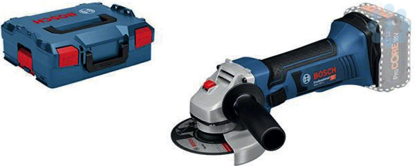 Akku-Winkelschleifer GWS 18-125 V-LI, Der kompakte GWS 18-125 V-LI Professional ist der kleinste und leichteste kleine Akku-Winkelschleifer in der 18-Volt-Klasse von Bosch. Dank des leistungsstarken 4-poligen Motors entspricht seine Leistung der eines kabelgebundenen 800-Watt-Schleifers. Mit seinem geringen Gewicht von nur 2,3 kg und seiner kompakte Gehäuseform eignet sich der Schleifer optimal für Arbeiten überkopf und an engen Stellen. Seine volle Kompatibilität mit allen Bosch Professional 18-Volt-Akkus und -Ladegeräten eröffnet zahlreiche Optionen. Dieses Elektrowerkzeug wurde zum Trennen und Schleifen von Metall, Fliesen und Mauerwerk konzipiert. Es ist mit der Staubabsaugung GDE 125 EA-S Professional und mit allen Bosch Professional 18-Volt-Akkus und -Ladegeräten kompatibel (Professional 18V System). Auch kompatibel mit AMPShare, der markenübergreifenden Akku-Allianz. Der GWS 18-125 V-LI Professional verfügt außerdem über eine Schutzhaube und einen Wiederanlaufschutz. Zusatzhandgriff (1 602 025 024); Aufnahmeflansch (ET-Nr. 2 605 703 014); L-BOXX 136 (1 600 A01 2G0); Spannmutter (1 603 340 040); Schutzhaube (1 619 P06 548); Zweilochschlüssel (ET-Nr. 1 607 950 060); Zweilochschlüssel (1 607 950 043); 1/1 L-BOXX-Einlage für Gerät und Ladegerät (1 600 A00 2WH)