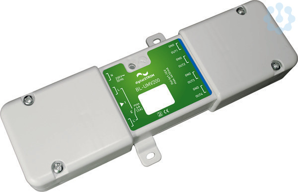 ) mit analogem 0 bzw. 1-10 V-Eingang, 4 Ausgangskanäle, 1 Eingang für Bedientaster, vollständiges Ausschalten der angeschlossenen Geräte über Schaltrelais, Ansteuerung über digitalSTROM Kommandos, 175x52x28 mm