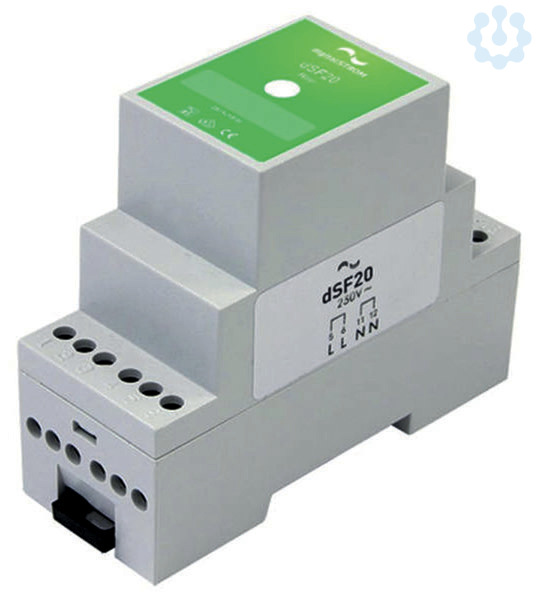 Netzfilter digitalSTROM dSF20, Filterung von netzseitigen Störungen, Entkopplung anderer Installationen vor dem digitalSTROM-System, ein dSF20 pro Phase (max. 3 Stk. pro Verteilung), Übertemperaturschutz, 0,5 W Eigenverbrauch, LED grün bei Betriebszustand, Breite 35 mm