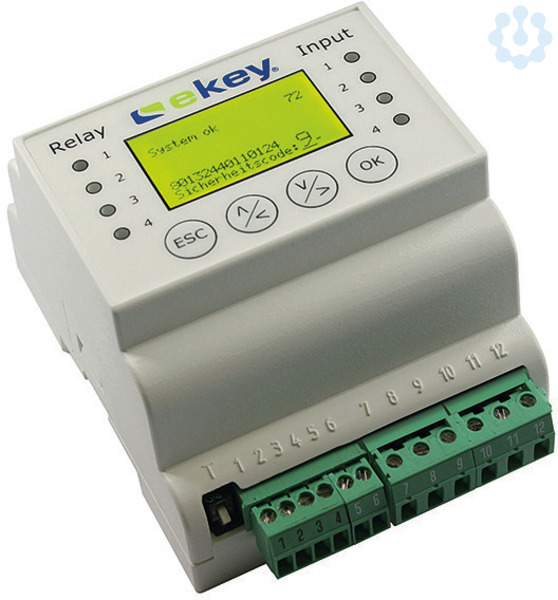 Steuereinheit ekey home SE REG 2. Steuereinheit ekey home SE REG 2, 2 Wechselkontakte potenzialfrei (max. 42 VAC/DC, 2 A), 4 Teilungseinheiten, 2 potenzialfreie Eingänge zur Aktivierung der Ausgänge, Versorgungsspannung: 8–24 VAC oder 8–30 VDC bzw. Klemmen 1 und 2 des Netzgeräts Art. 346000, Funktionen: Nutzer aufnehmen, Nutzer einzeln löschen, Relaiszeiten einstellbar (0–99 s), Code ändern, Reset, Testmodus, komfortables und hinterleuchtetes Textdisplay.