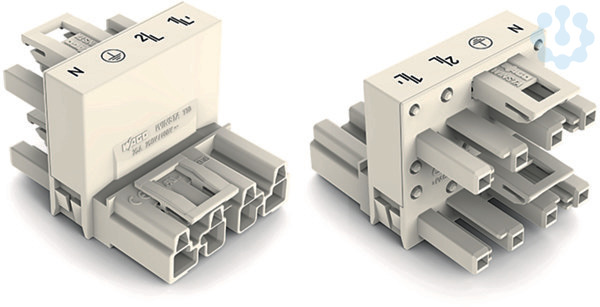 h-Verteiler; 4-polig; Kod. A; 1 Eingang; 2 Ausgänge; einseitige Abgänge; 3 Verriegelungsklinken; für fliegende Verbindungen; weiß