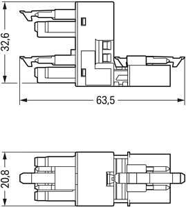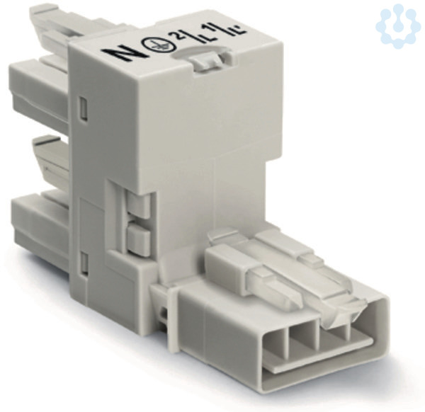 h-Verteiler; 4-polig; Kod. A; 1 Eingang; 2 Ausgänge; einseitige Abgänge; 3 Verriegelungsklinken; für fliegende Verbindungen; weiß