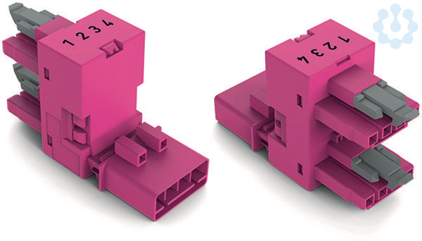 h-Verteiler; 4-polig; Kod. B; 1 Eingang; 2 Ausgänge; einseitige Abgänge; 2 Verriegelungsklinken; pink