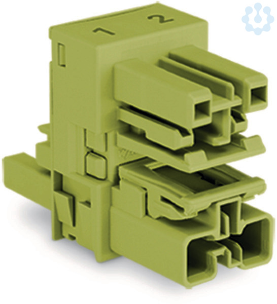 h-Verteiler; 2-polig; Kod. B; 1 Eingang; 2 Ausgänge; beidseitige Abgänge; 2 Verriegelungsklinken; hellgrün
