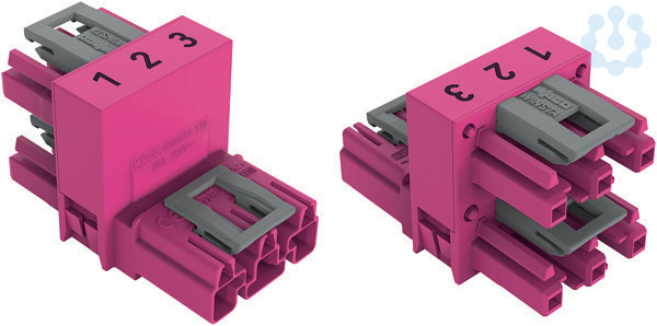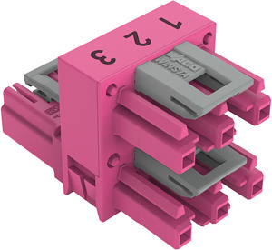 h-Verteiler; 3-polig; Kod. B; 1 Eingang; 2 Ausgänge; einseitige Abgänge; 3 Verriegelungsklinken; für fliegende Verbindungen; pink