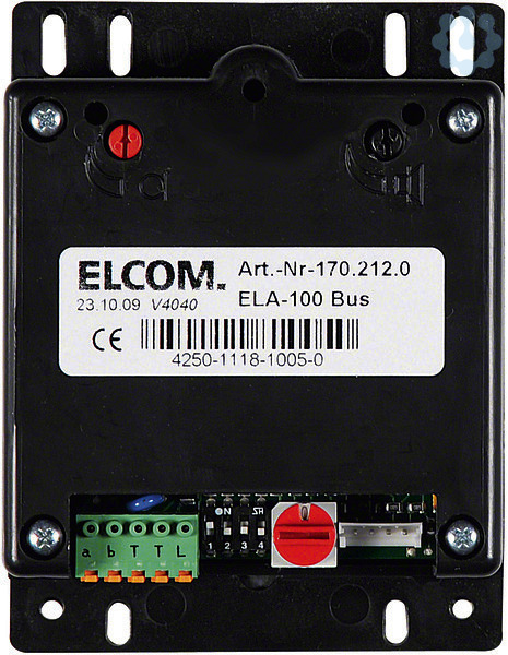 ELA-100 Türlautsprecher i2 Audio Einbau. Einbau-Türelektronik für Türkonstruktionen, Sprechfächer oder Briefkastenanlagen zum Einbau in Sprechanlage/Intercom nach DIN EN 50486 in i2Audio-Technik. Einbaugerät bestehend aus Einbautürlautsprecher und Lautstärkeregler für Mikrofon/Lautsprecher. Adresseinstellung durch Drehschalter. Potentialfreier Türöffnerschaltkontakt mit Türöffnerfunktion jederzeit (abschaltbar), Türöffnerdauer entspricht der Betätigungsdauer des Türöffnertasters (Zeitbegrenzung auf 10 Sekunden). Anschlussmöglichkeit für Lichttaster. Quittierungston bei Ruftasterbetätigung (abschaltbar), Rückkopplungsunterdrückung durch elektronische Sprachsteuerung und Anschluss für Tastenexpander.