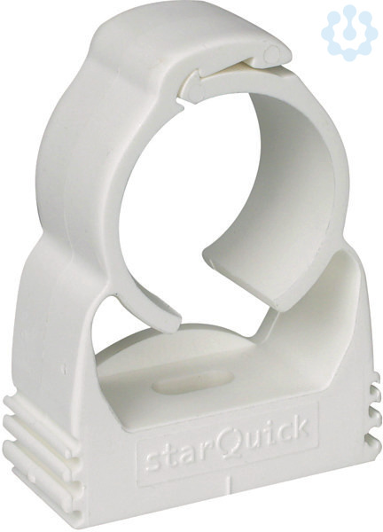 Walraven Rohrschelle starQuick aus weißem (RAL 9003) Polyamid (PA6) schließt sofort, wenn das 35- bis 40-Millimeter-Rohr eingedrückt wird, temperaturbeständig -40 bis +90 Grad, mehrere Schellen aneinandersteckbar,UV-, alterungs-, öl- und benzinbeständig.
