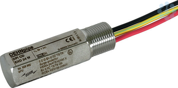 Überspannungsableiter mit kapazitätsarmer Schutzschaltung in druckfester Kapselung zum Einsatz in explosionsgefährdeten Bereichen zum Schutz von Messkreisen und Bussystemen. Isolationsfestigkeit > 500 V gegen Erde.